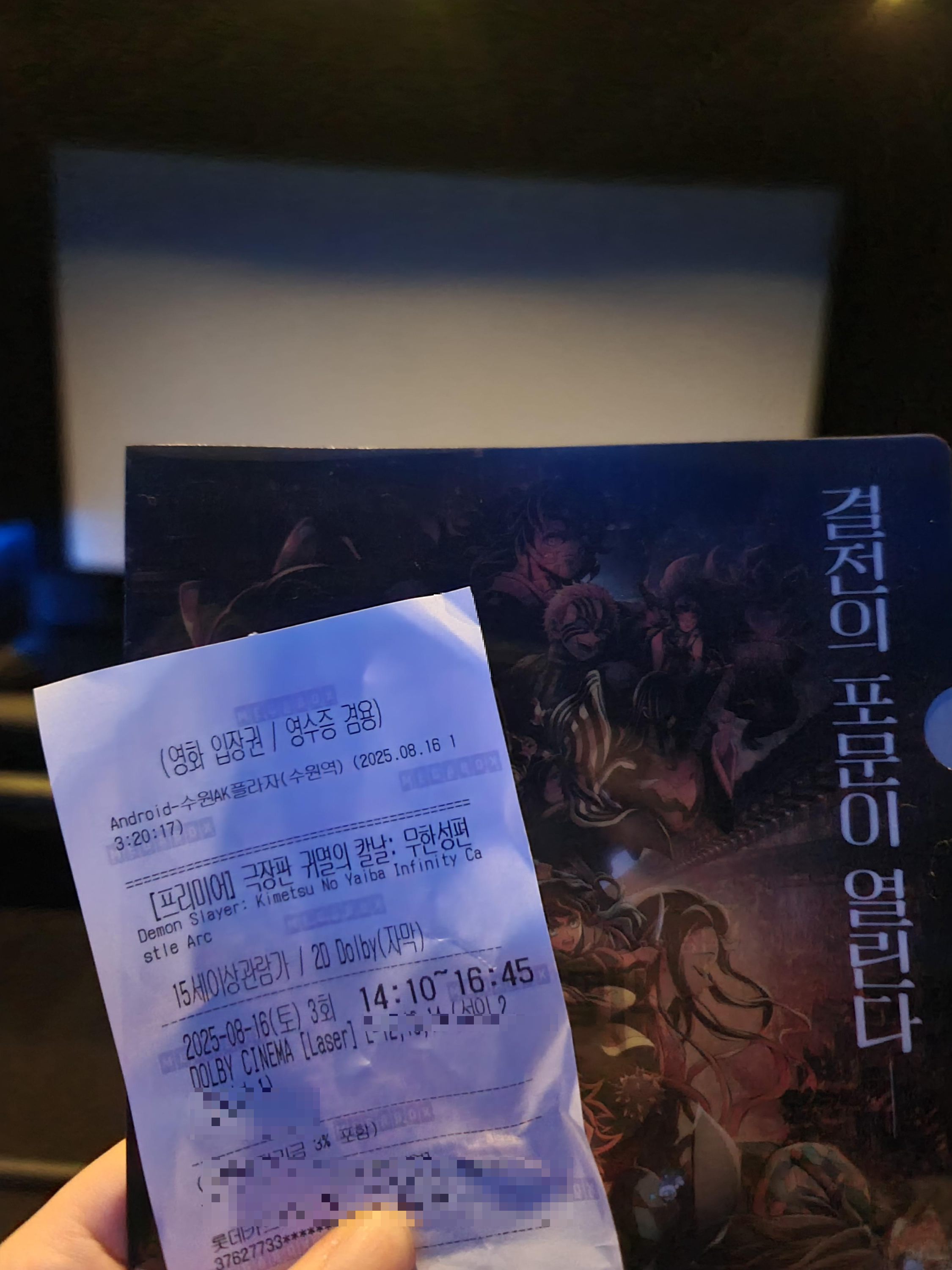 저 역시 22일 정식 개봉에 앞서 16일 프리미어 상영회에 갈 수 있게 되어, 마치 귀멸 세계 속에 직접 들어가는 것 같은 설렘을 안고 보고 왔습니다.