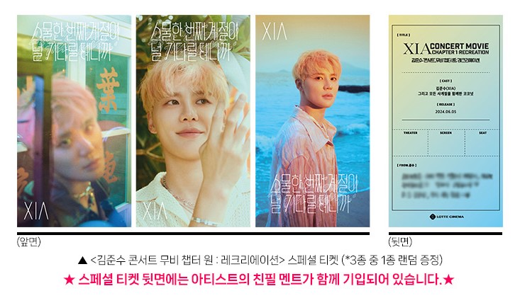[김준수 콘서트 무비 챕터 원:레크리에이션]을 관람하면 스페셜 티켓을 선착순 증정한다 합니다.