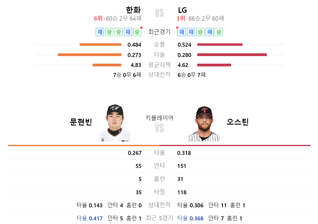 < 한화이글스 vs LG 트윈스 >