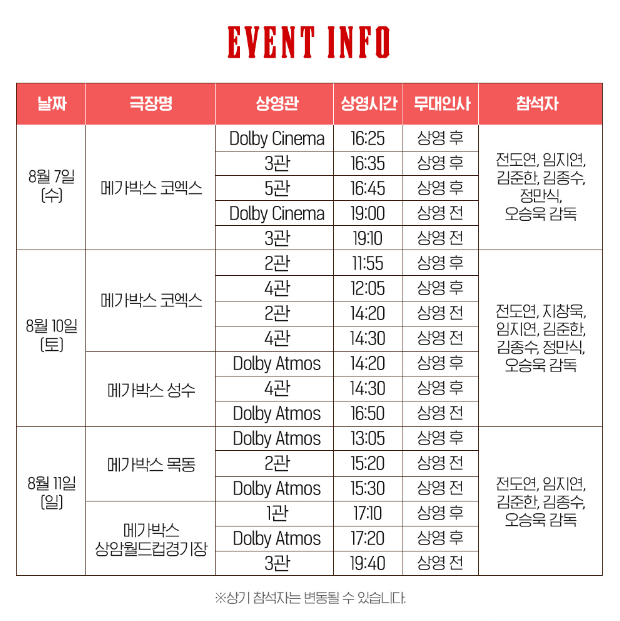 추가 무대인사스케줄 나올 시 업데이트 하도록 하겠습니다.)