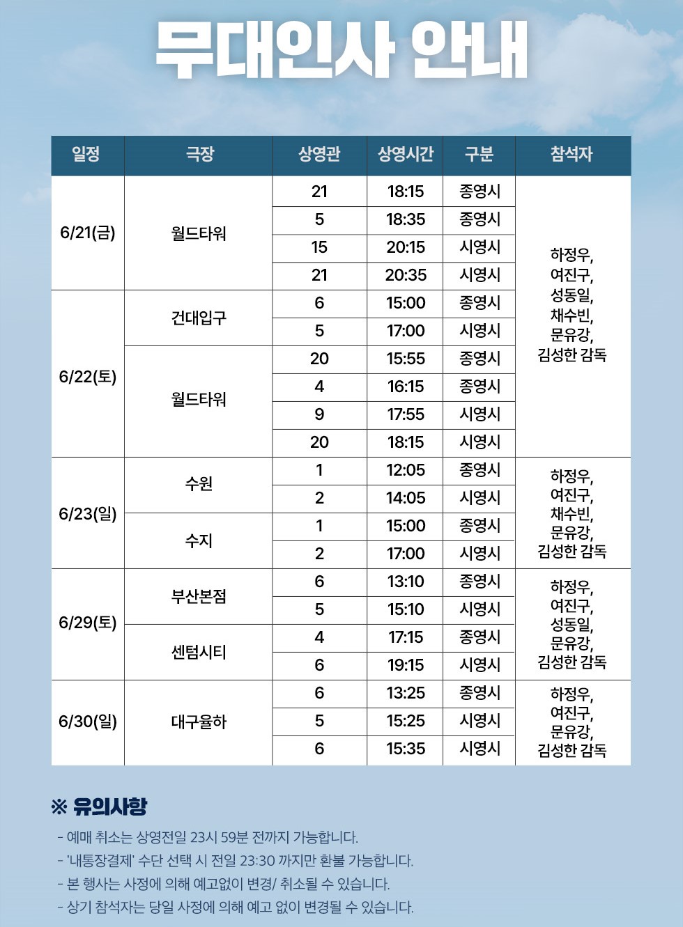 1. 무대인사 스케쥴 안내