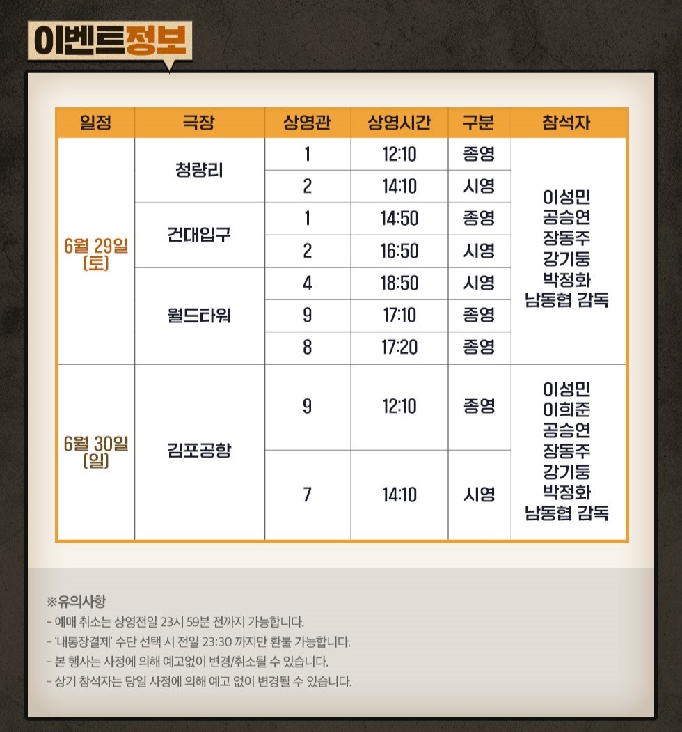 ◆ 영화 <핸섬가이즈> 무대인사 영화관 안내