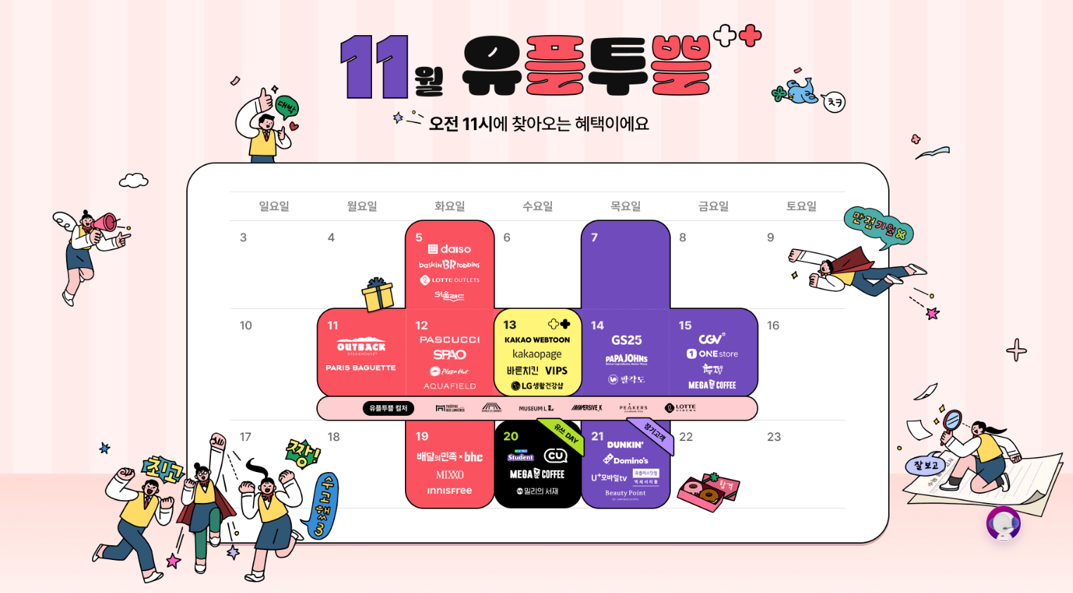 통신사 유플러스 쓰시는 분들도 11월 유플투쁠 혜택 가득 받아가시기 바랍니다.