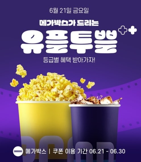 6월 21일(금)에 유플투쁠 메가박스 쿠폰 받고