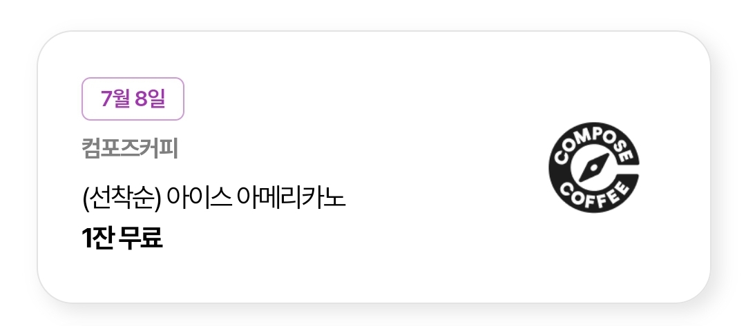 그리고 7월 유플투쁠 혜택에서는 쿠폰 제공되는 날짜마다 컴포즈 아이스아메리카노 1잔이 선착순으로 쿠폰 증정됩니다. 잊지 말고 꼭 혜택받으시기 바랍니다.