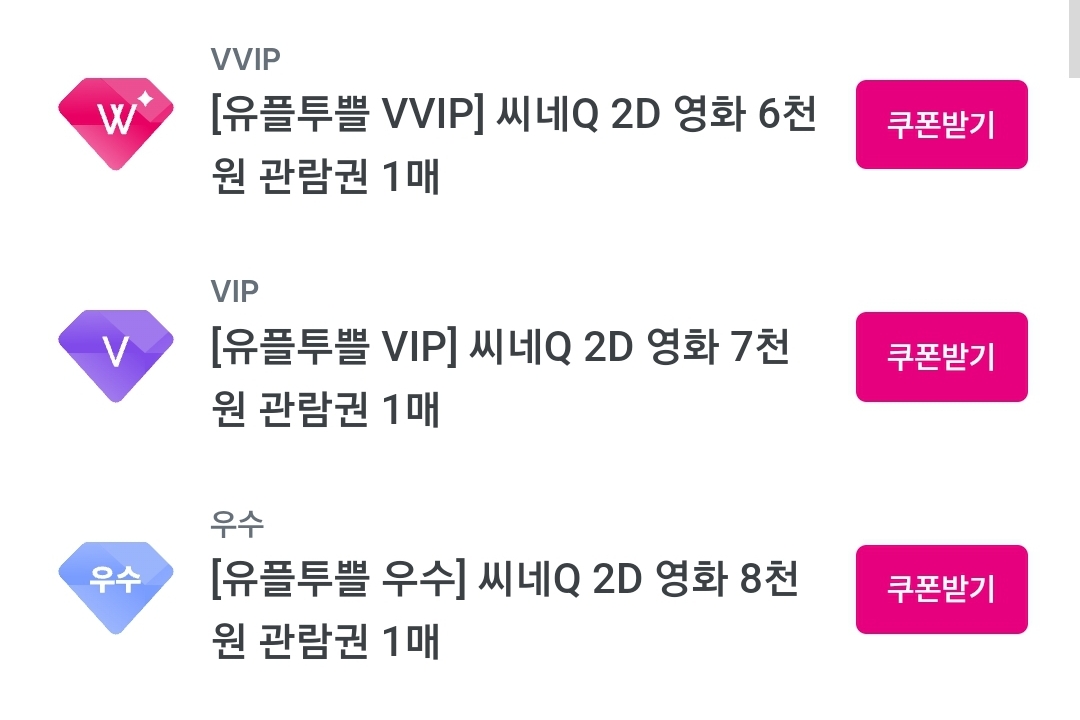 유플투쁠은 회원등급에 따라 쿠폰을 다르게 받을 수 있는데 회원등급은 아래와 같습니다.