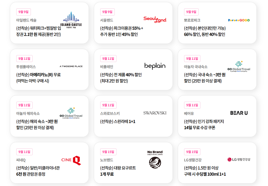정말 인기 많은 할인혜택들은 금방 선착순 마감되니