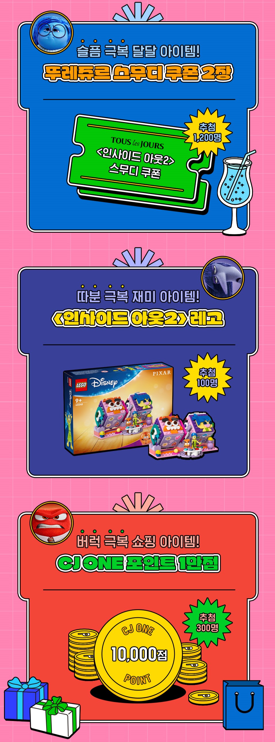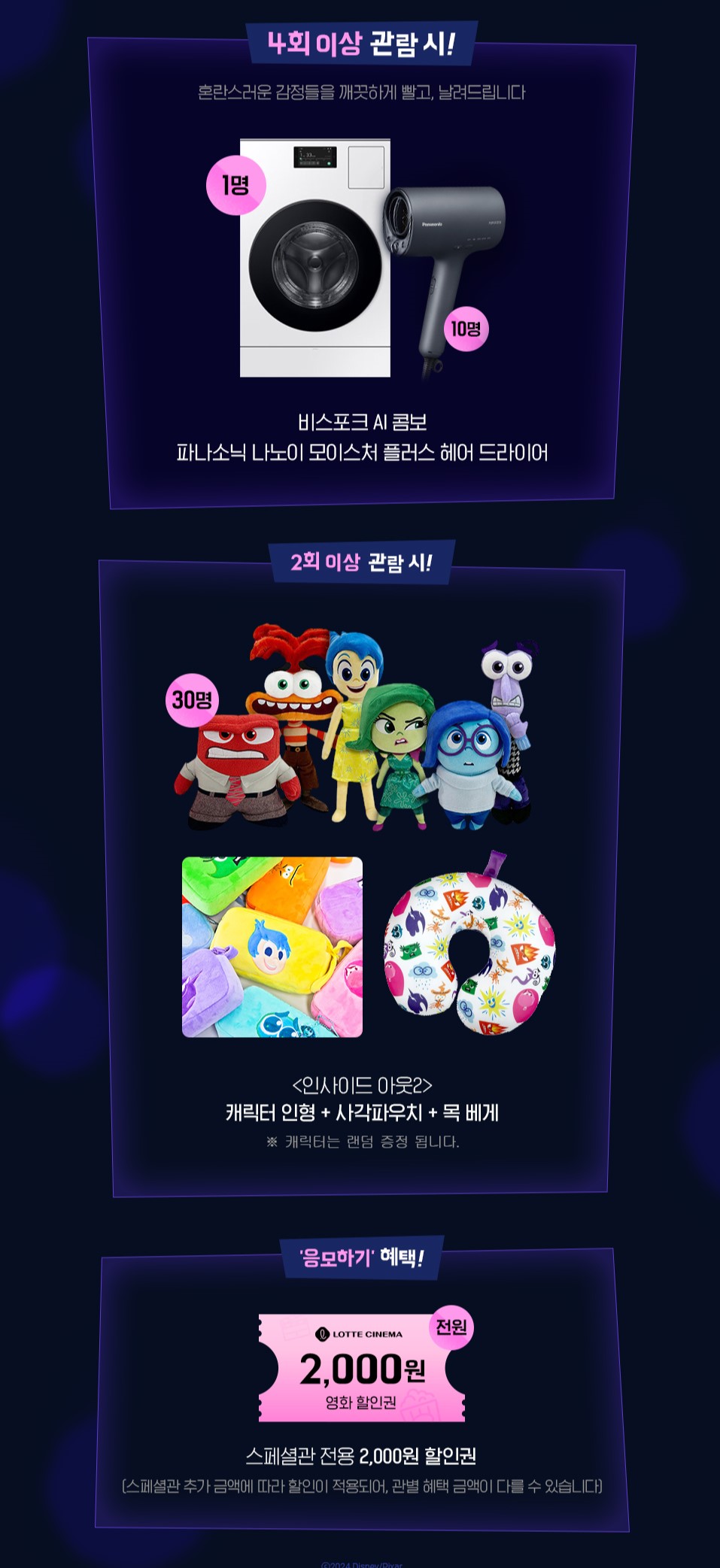 · 기간 내 <인사이드 아웃2> 롯데시네마 홈페이지/APP 예매 후 참여하실 수 있습니다.