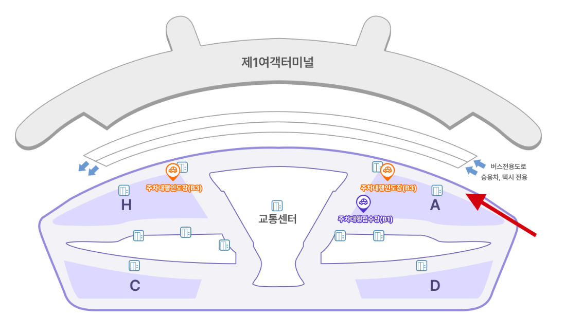 - 각 터미널마다 공식주차대행업체가 다르며, 공항 도착 후 주차대행업체 요원에게 차를 맡기고 주차를 대신해주기에 성수기나 주말, 황금연휴 등 공항혼잡지 유용한 주차방법입니다. 주차대행비, 주차요금 모두 별도로 부과됩니다.