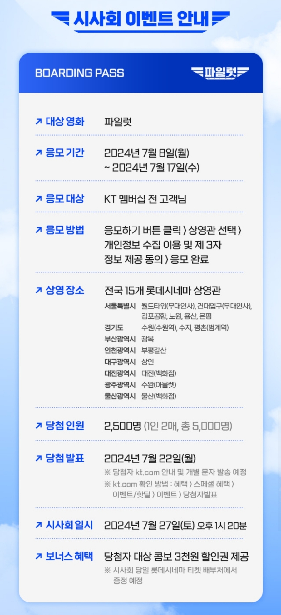 1. KT 멤버십 <파일럿> 시사회 초청 이벤트