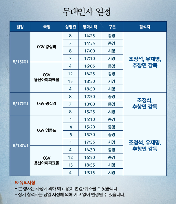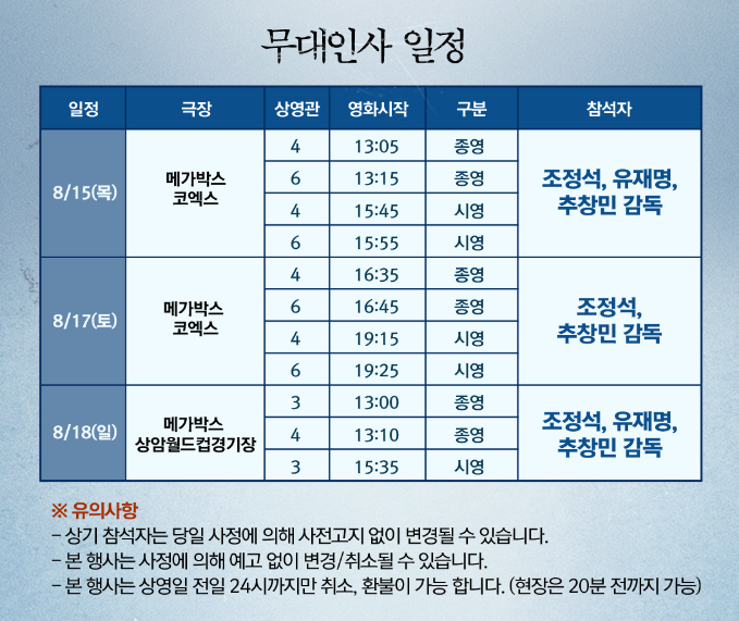 주연배우와 감독 무대인사 스케줄이 나와 알려드리려고 합니다.