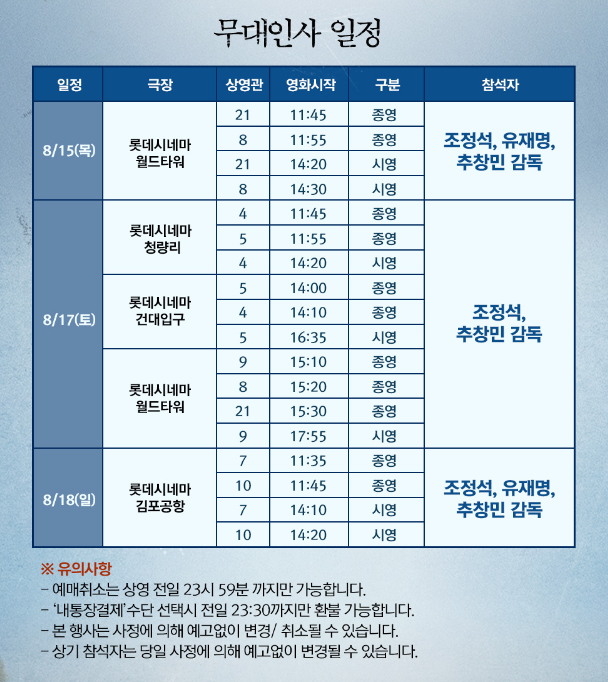 무대인사 스케줄에 맞춰서 영화도 감상하시고