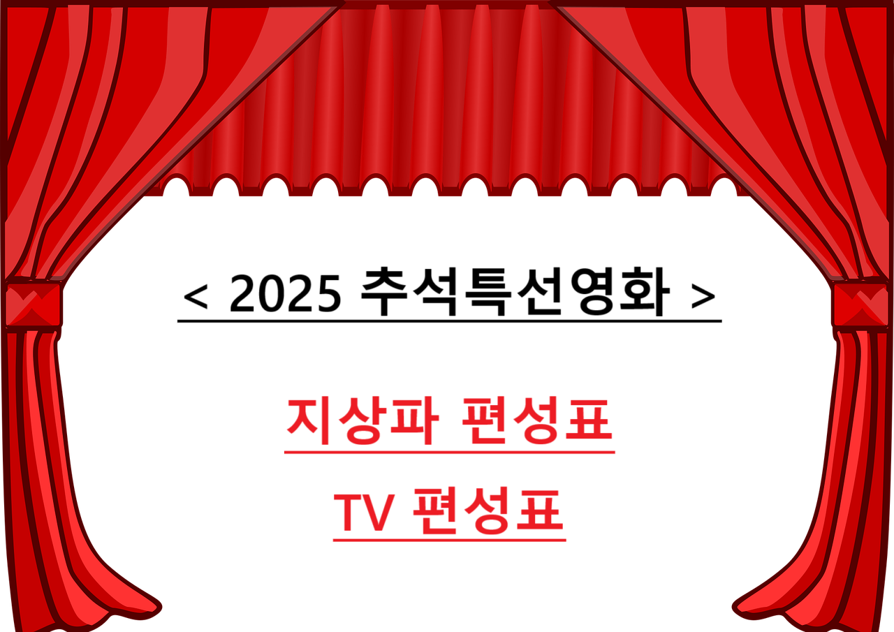 다만 “언제, 어떤 채널에서 어떤 영화가 방송되는지” 한눈에 정리된 정보를 찾기 어렵다는 분들이 많으실 텐데요. 그래서 이번 글에서는 2025 추석특선영화 지상파 편성표를 날짜별로 깔끔하게 정리해 드렸습니다.