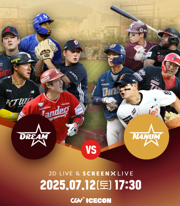 바로 오는 7월 12일, 2025 한국 프로야구 올스타전이 CGV 극장에서 생중계되어 야구팬들을 맞이합니다. 넓은 스크린과 짜릿한 음향 효과 속에서 즐기는 올스타전은 마치 야구장 VIP석에 앉아 있는 듯한 몰입감을 선사할 거예요.