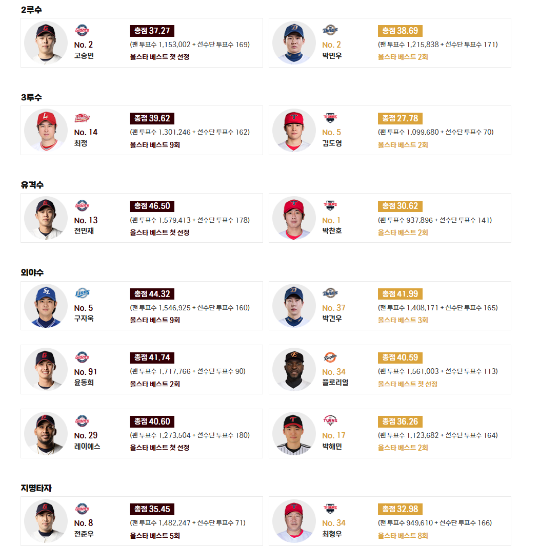 2025 프로야구 올스타전 "올스타 베스트 12" 명단이 확정되었습니다.
